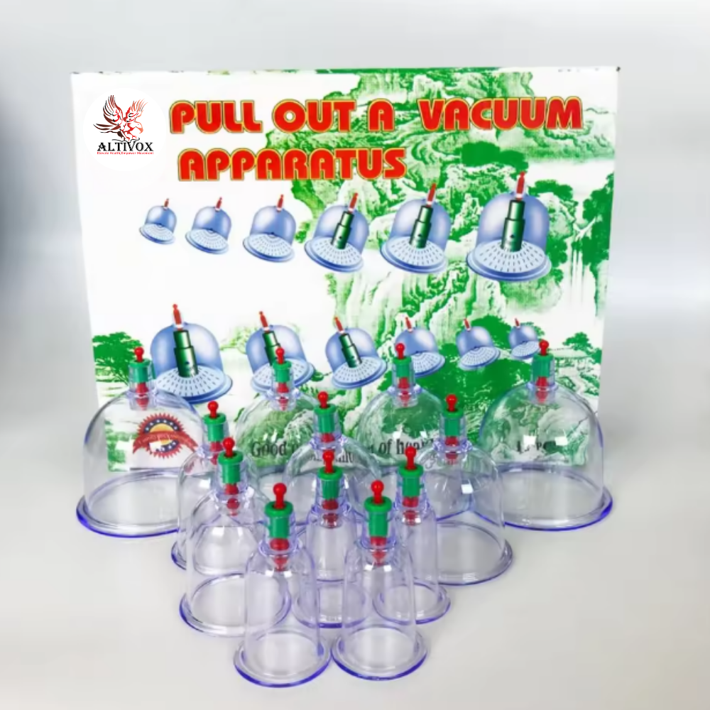The Hijama Cupping Kit (Model 12pcs-1) is a complete therapeutic solution designed for traditional cupping therapy. Made from high-quality GPPS material, this kit ensures durability, safety, and ease of use. It includes multiple cup sizes, magnetic needles, and essential accessories to provide effective treatment for different body areas.