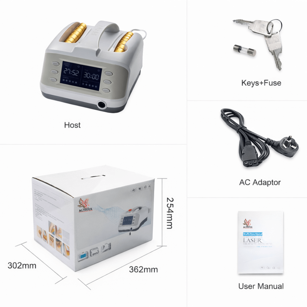 The AV-K-L1106 is a versatile multifunction laser therapy device designed for both professional and home use. Combining a medical-grade 808nm laser and a home-use 650nm laser, it delivers targeted therapy for pain relief, rehabilitation, and tissue repair. The device features dual probes for flexible treatment, adjustable power levels, and high precision, making it suitable for use in clinics, physiotherapy centers, and for personal therapy at home.